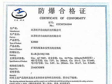 KJJ660矿用隔爆兼本安型万兆交换机-防爆证